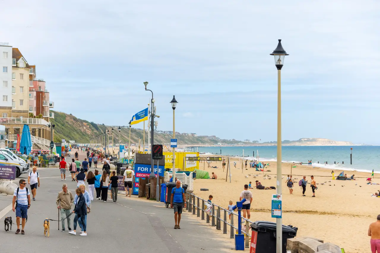 Bournemouth es un apasionante centro turístico costero situado en el sur de Inglaterra. Se trata de una atractiva ciudad estudiantil que atrae a turistas y estudiantes de todas partes del mundo. El clima templado y los veranos con agradables temperaturas, invitan a una gran experiencia vacacional al aire libre. El centro está rodeado de amplios jardines, y a tan solo unos minutos se encuentra la playa, que es una de las más limpias y populares playas de arena de Inglaterra.
